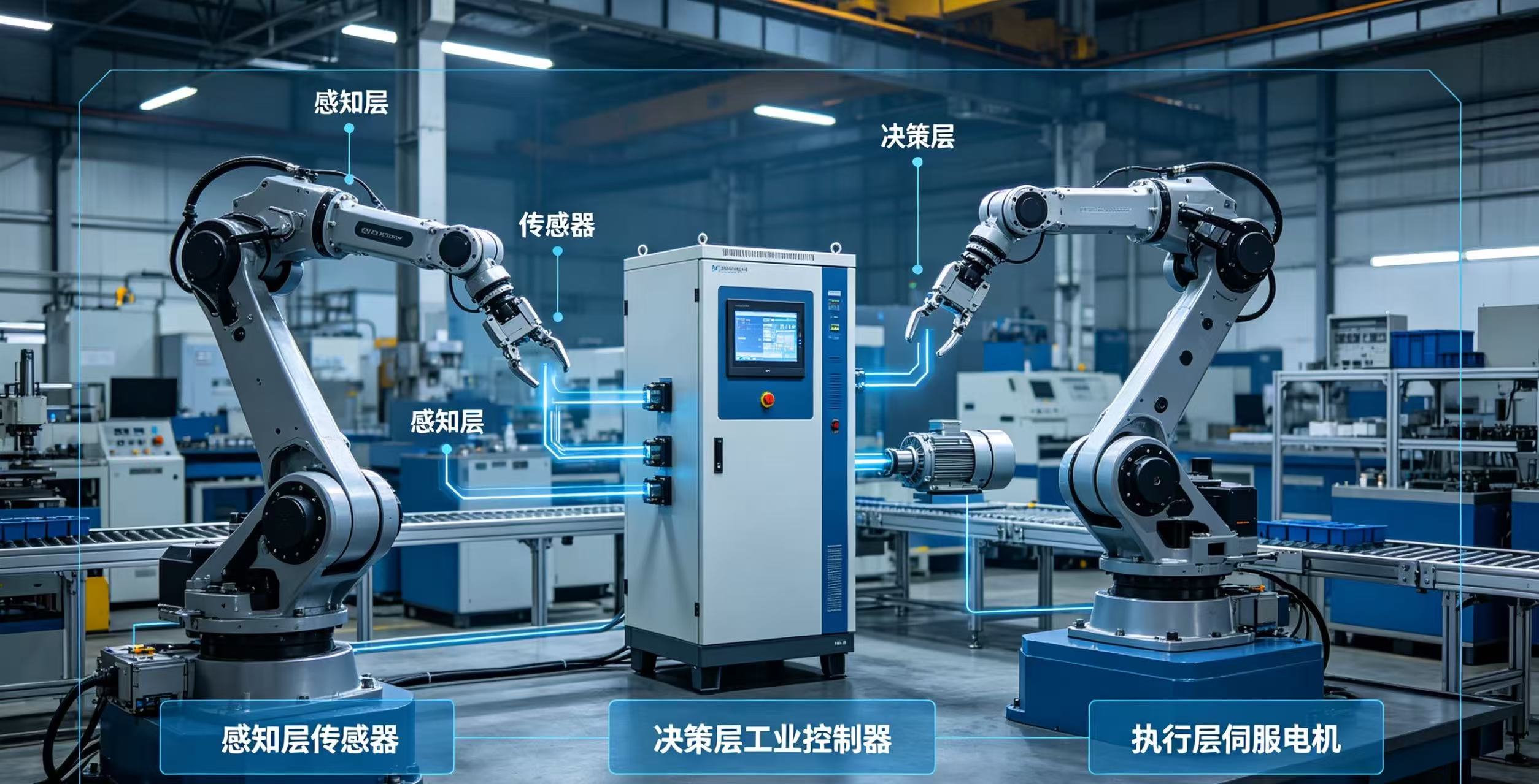 动器等组件,精准响应决策层指令,完成抓取、搬运、装配、焊接等各类操作。